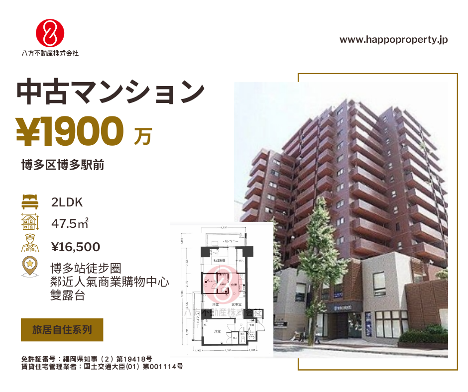 八方不動産株式會社開設於日本九州福岡市,專注為客戶提供多個熱門地區包括:博多、天神、藥院、大濠、白金及赤坂等物業。我們的工作團隊能操流利日語、廣東話、英語及國語...