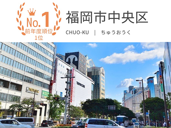 根據福岡縣版最想住的地區Ranking(街の住みここちランキング2021)指出,福岡市中央區連續第三年成為首位,主要是因為市中心有天神、大濠公園、藥院和六本松,屬九州北部的政治和經濟中心,亦是九州最大的繁華鬧市。